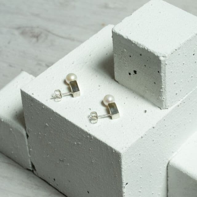 シルバー925と真鍮を張り合わせて作ったピアス。小さなサイズ感でオフィスにもぴったり。